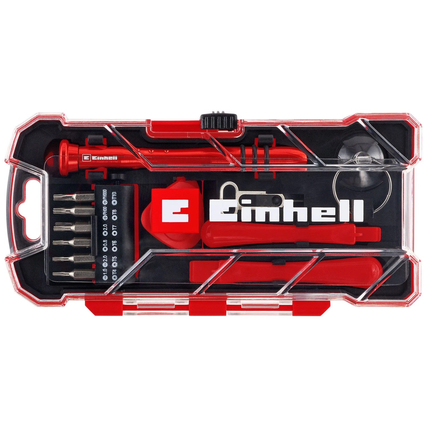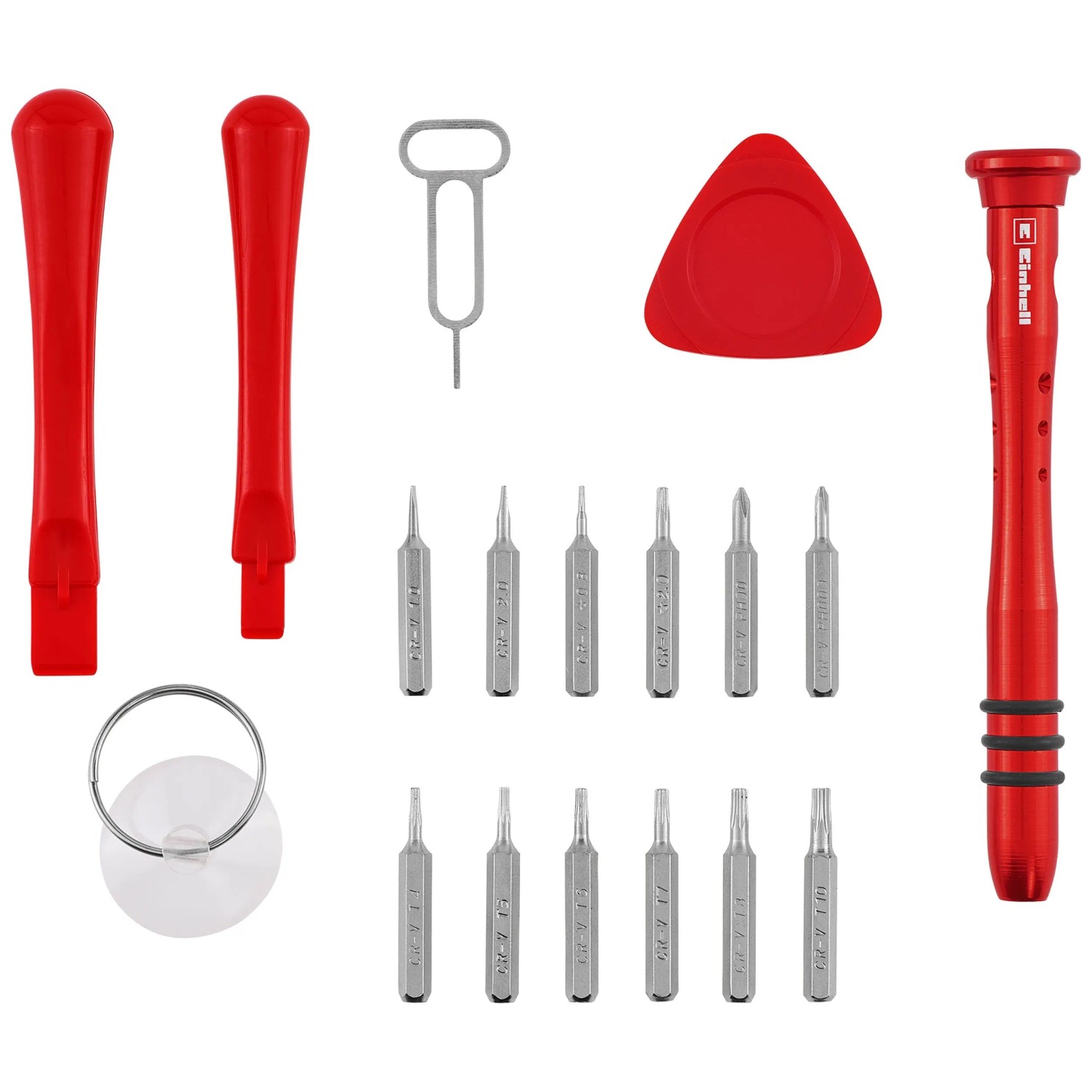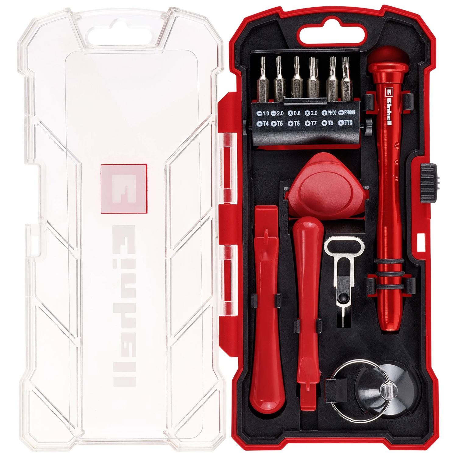 Zusätzlich erleichtern 3 stabile Öffnungswerkzeuge aus Kunststoff das schonende Öffnen empfindlicher Gehäuse, während ein Saugnapf mit Metallringgriff eine sichere Handhabung von Glas und Kunststoffteilen ermöglicht. Das Set wird in einer robusten Aufbewahrungsbox geliefert, die für Ordnung und Schutz der Werkzeuge sorgt und sich sowohl für den privaten Einsatz als auch für professionelle Anwendungen eignet.