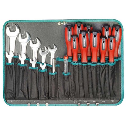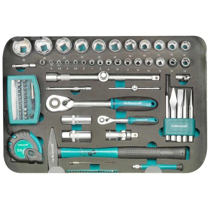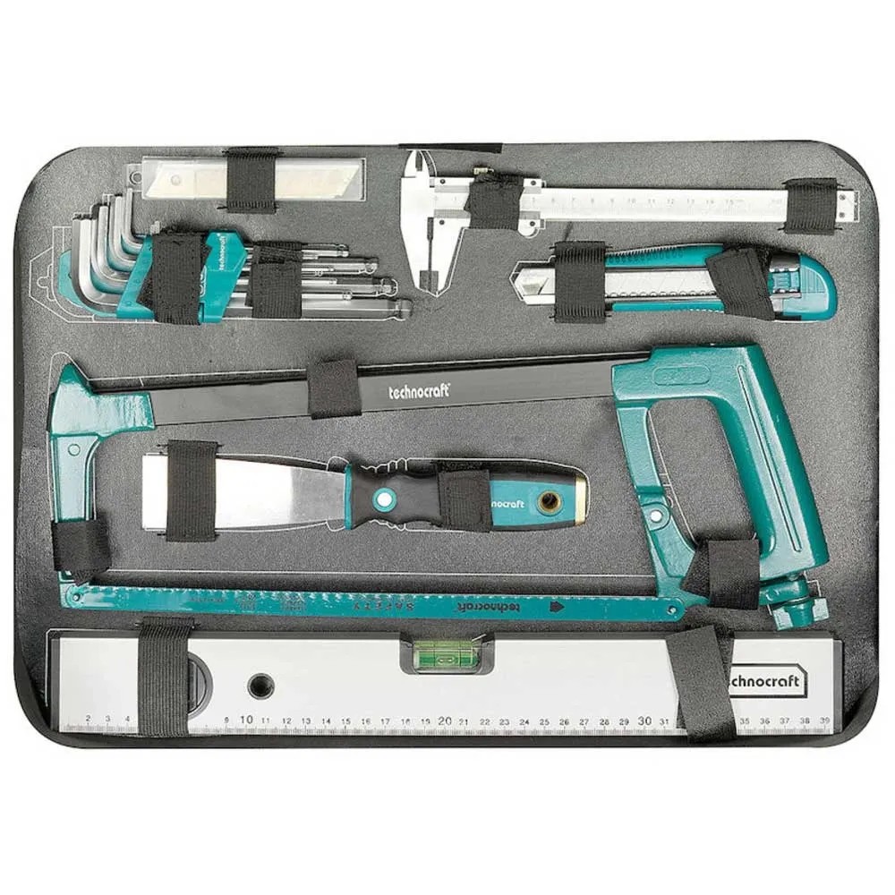 Dieser praktische Werkzeugkoffer von Technocraft aus Kunststoff bietet alles, was Sie für professionelle Arbeiten benötigen. Er ist vielfältig einsetzbar in Haus, Garage und Garten, da die Ausstattung alle notwendigen Werkzeuge umfasst, darunter auch Hammer, Ratschen und Stecknüsse 1/4" und 1/2", Schraubendreher und Zangen.