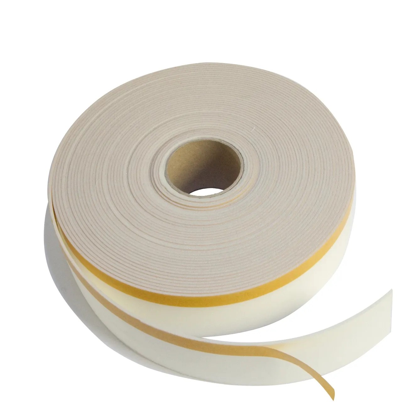 Geschlossenzelliger PE-Schaum, Weiss, konfektioniert mit einem 10 mm breiten Klebestreifen und einer sehr hohen Klebekraft. Keine Wasseraufnahme. Dämmung und Dichtung von Blendfugen. Vermeidet Spannungen bei Putzanschlüssen, bei abgehängten Decken und Trennwänden. Da nur 10 mm klebend sind, kann der aus der Blendfuge überstehende Rest des Streifens gut und sauber an der Putz- oder GK-Plattenkante abgeschnitten werden. 30 m lang