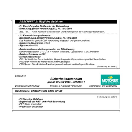 Motorex Garden Tool Care Pflegespray für Gartengeräte 250 ml