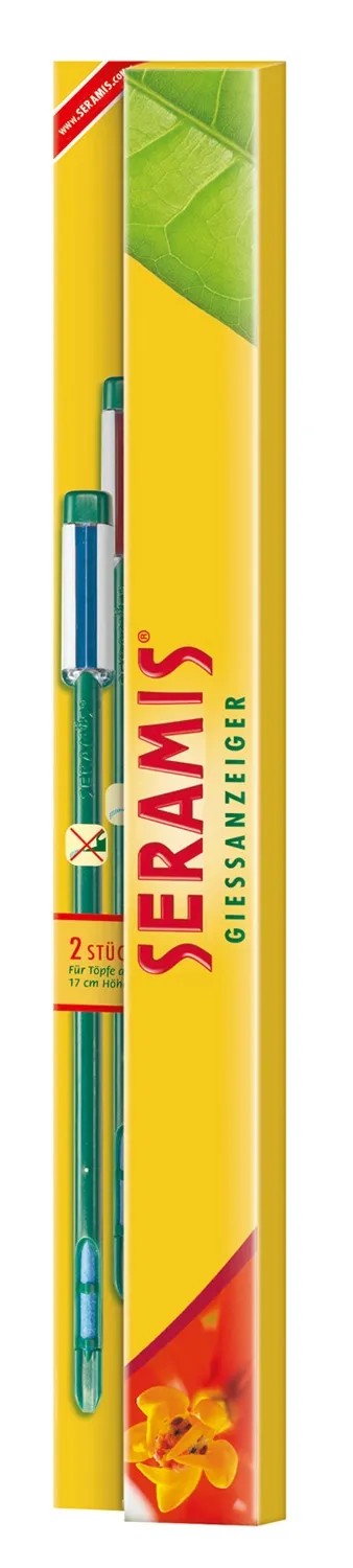 Seramis Indoor Giessanzeiger klein ist für für Seramis Indoor Pflanzgranulat in Töpfen grösser 17 cm. Der Seramis Giessanzeiger zeigt Ihnen dazu den genauen Zeitpunkt an. Ihre Pflanzen in Seramis werden aufgrund der hohen Speicherfähigkeit des Pflanzgranulats weniger häufig gegossen. Stecken Sie den Giessanzeiger bis zum unteren Rand des Anzeigefeldes in den Wurzelballen der Pflanze. Zum Ablesen nicht entfernen oder drehen. Der Seramis Giessanzeiger zeigt Ihnen dazu den genauen Zeitpunkt an: Rot = giessen. Blau = nicht giessen.