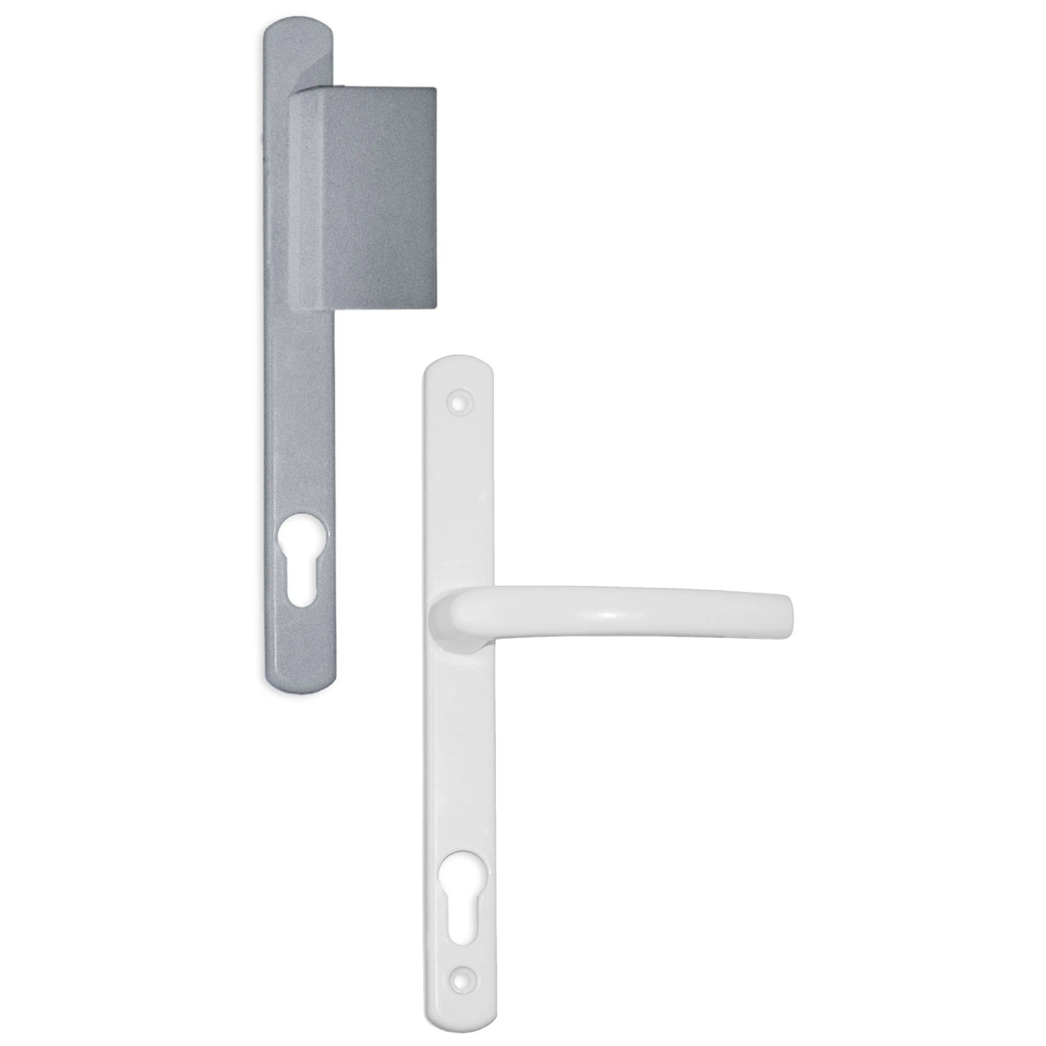 Die Drückergarnitur Contour in Weiss/Silber von Roro ist eine elegante Langschildgarnitur aus Aluminium, die sich ideal für Kunststoff-, Holz- und Aluminiumtüren eignet. Sie bietet eine stilvolle Kombination aus einem weissen Drücker auf der Innenseite und einer silbernen Platte auf der Aussenseite. Diese Garnitur ist robust und funktional, perfekt für den vielseitigen Einsatz in verschiedenen Türtypen.