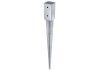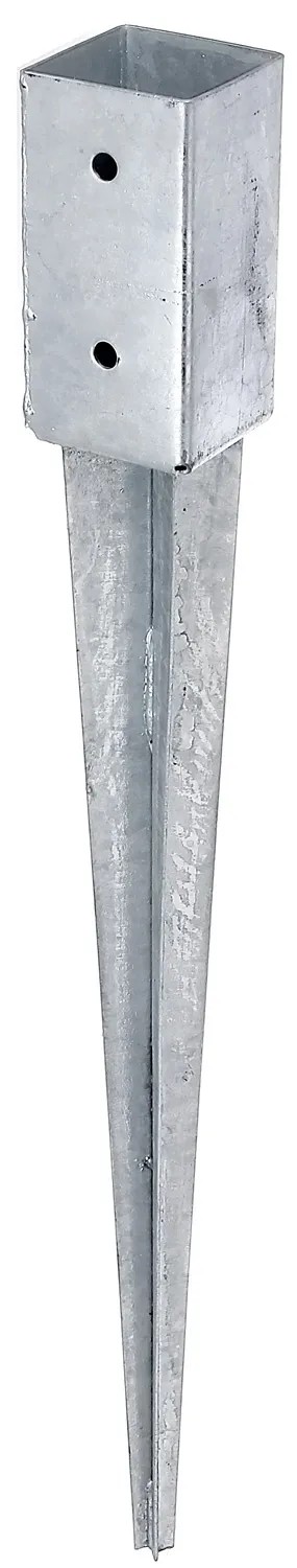 Eine Einschlag-Bodenhülse für Vierkantholzpfosten mit einem nicht-verstellbaren Topf.