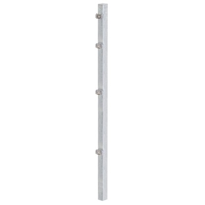 Ein Zaunpfosten inkl. Klemmlasche für die Befestigung von Doppelstab-Gittermatten, aus rohem Stahl, die Oberfläche ist feuerverzinkt.
