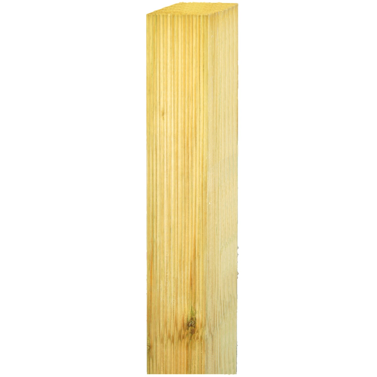 Der Vierkantpfosten mit flachem Kopf ist grün druckimprägniert und geriffelt-gehobelt. Er eignet sich ideal für die Montage verschiedener Zaunanlagen (Vorgartenzäunen, Sichtschutzzäunen und Toren) und als Konstruktionsholz.
