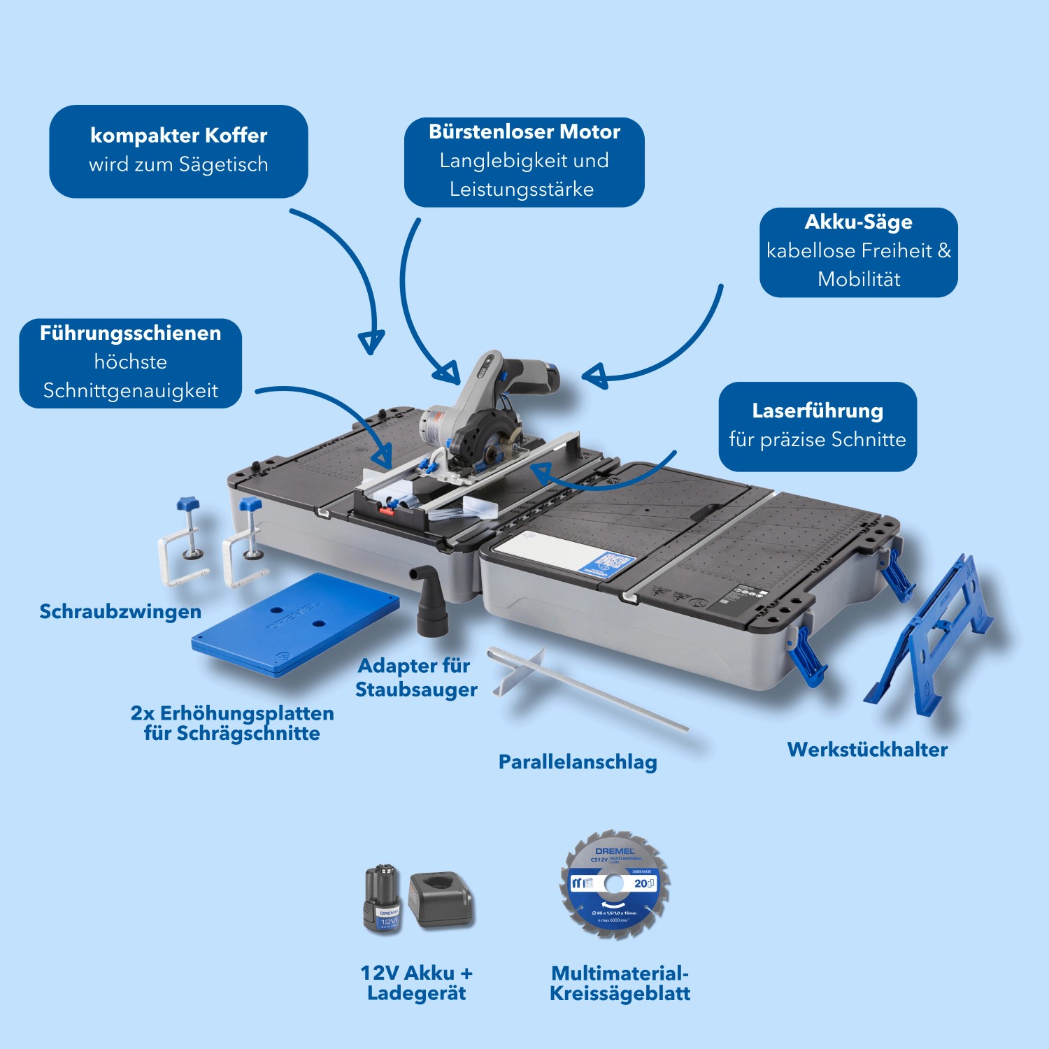 Dremel Mobile Sägestation CS12V-S1C Kreissäge mit Sägetisch-Koffer