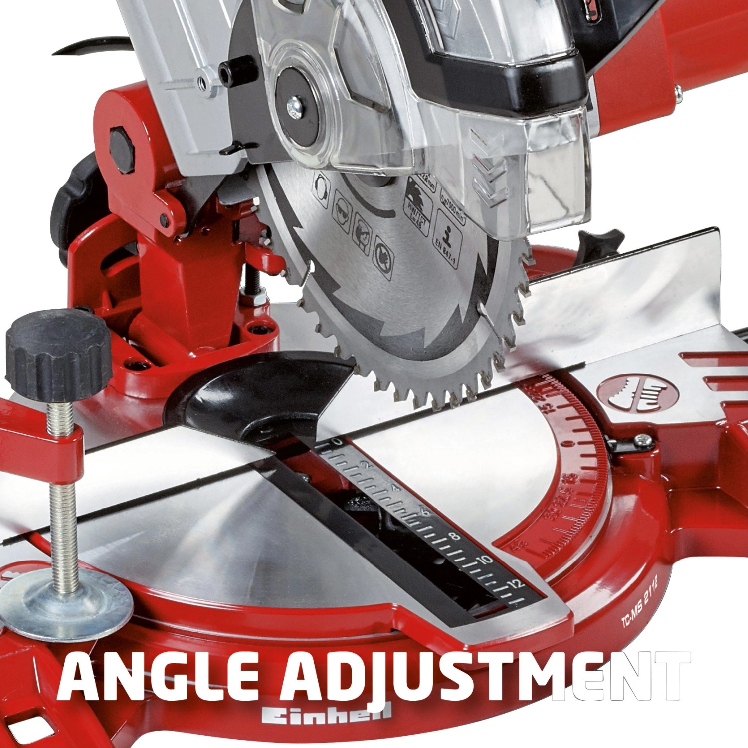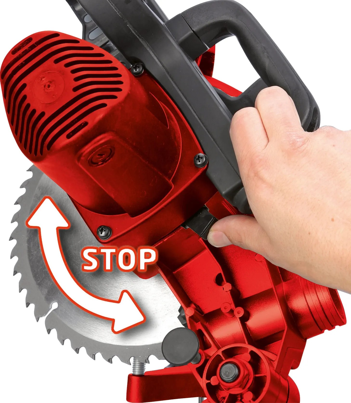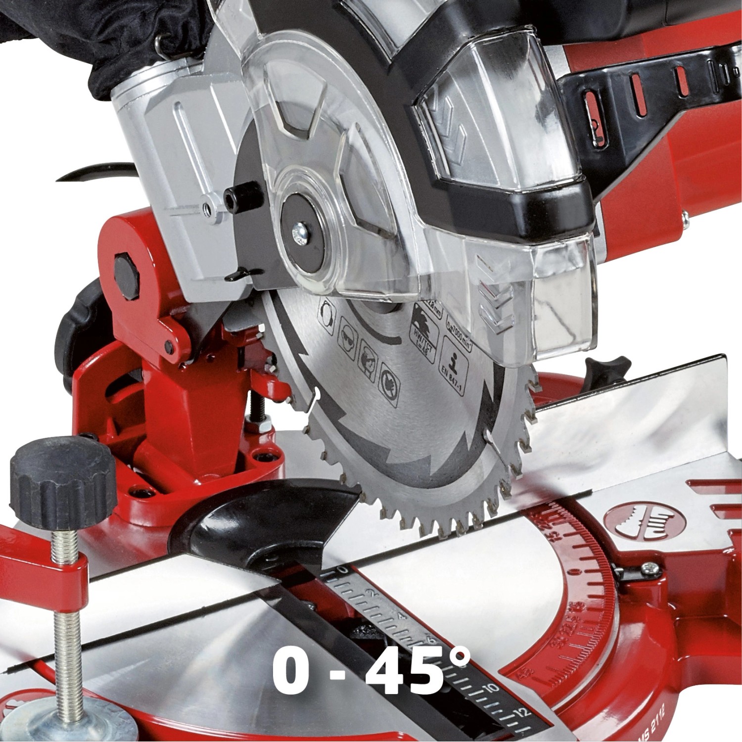 Die Einhell Kapp-Gehrungssäge TC-MS 2112 ist mit einem Präzisions-Hartmetall-Sägeblatt in Profiqualität versehen und schnell bereit, kleine Arbeiten wie Ablängen und Gehrungsschnitte an Materialien aus Holz, beschichteten Platten und Kunststoff durchzuführen. Die hochwertige Arbeitsplatte aus Aluminium-Druckguss überzeugt mit einem einhändig in verschiedene Positionen einstellbaren Drehtisch, wobei präzise Winkeleinstellungen vorgenommen werden können.