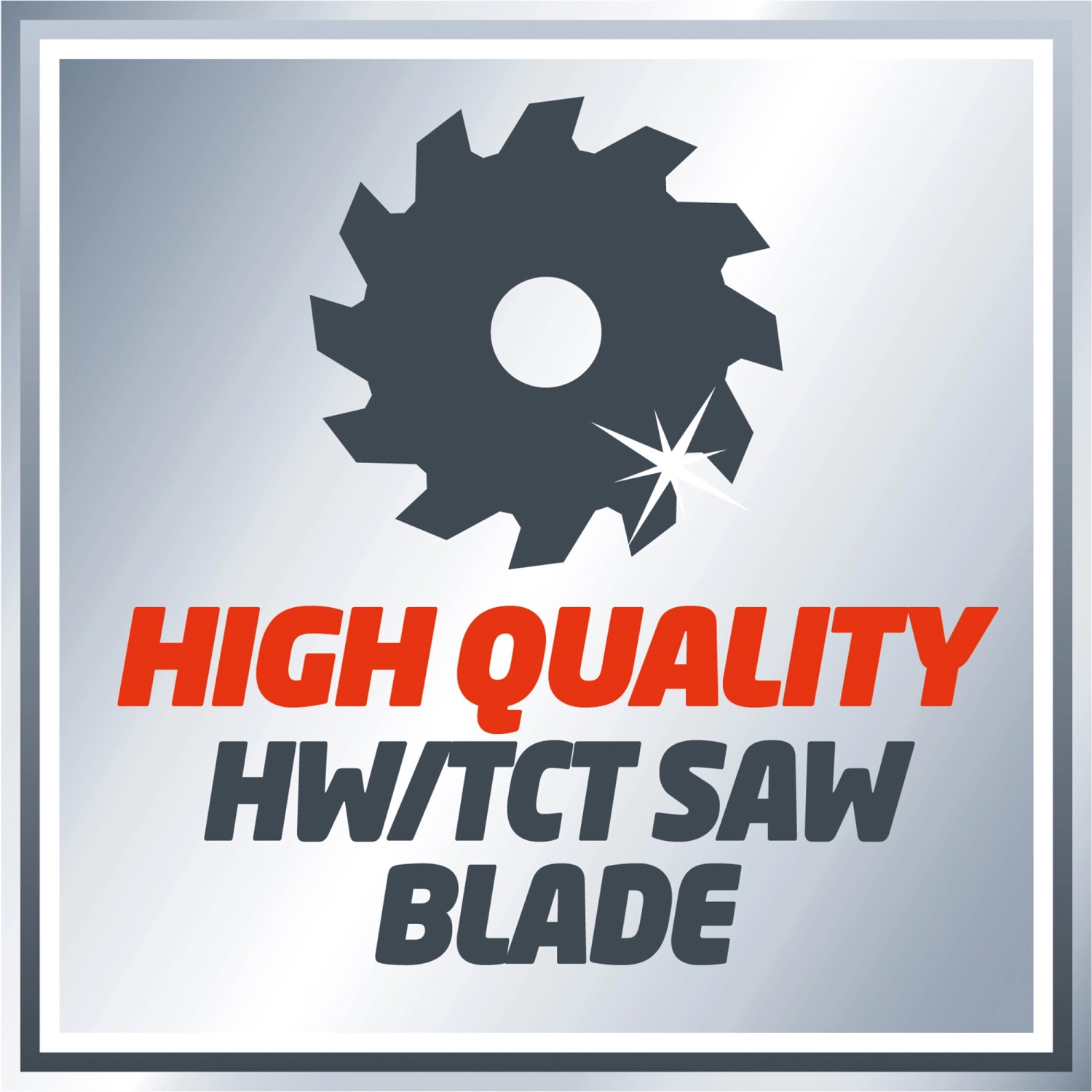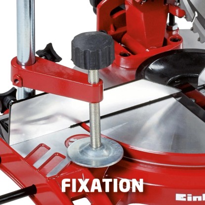 Der Tisch-Einsatz ist mit einer nützlichen Skala ausgestattet, bei der die Breite des Werkstücks bequem von der Arbeitsposition aus zu sehen ist. Die Werkstückauflagen auf beiden Seiten und eine zuverlässige Spannvorrichtung gewährleisten ein exaktes Arbeiten. Das Einhell-HM-Sägeblatt kann dank des Spindle-Locks einfach gewechselt werden. Für einen sauberen Arbeitsplatz sorgt der Spänefangsack. Eine Transportsicherung garantiert den leichten und sicheren Transport der Kappsäge.