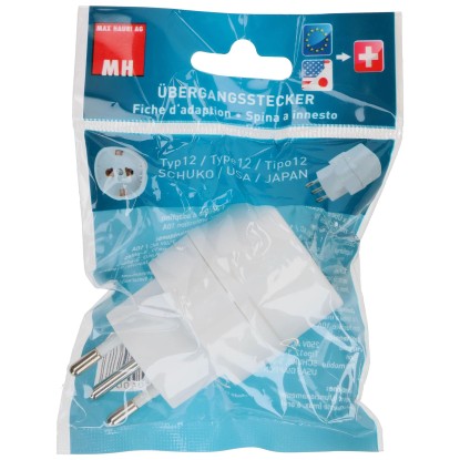 Der Reiseadapter / Übergangsstecker eignet sich, um Geräte mit deutschem (Schutzkontakt-) Anschluss auch an Schweizer-Steckdosen anzuschliessen. Selbst leistungsstarke Geräte wie z. B. ein Haartrockner können damit sicher betrieben werden. Dieser Übergangsstecker ist nur für temporäre Anwendungen vorgesehen. Der Adapter besteht aus Polycarbont (PC).